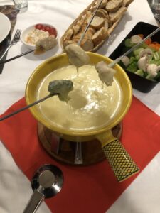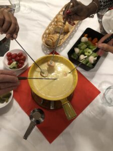 De kaasfondue wordt ter plekke bereid door onze kok.